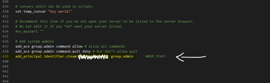 3. Create a new line and add yours, for example on line 440 we would copy the details from line 439 and just change the steam license to our own